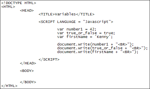 Este ejemplo también muestra como imprimir en pantalla nuestras variables con "document.write()".
